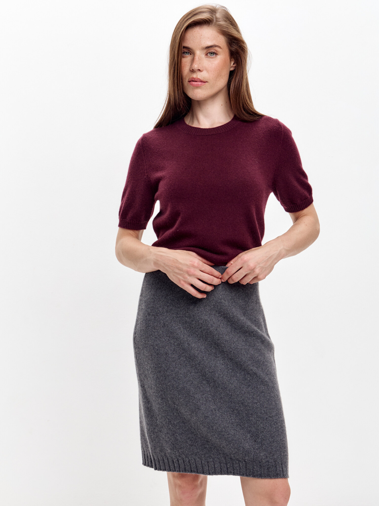 Кашемировая мини-юбка. Эластичный пояс на резинке позволяет регулировать посадку. Элегантный силуэт и согревающий комфорт кашемира делает данную модель эффектной базой почти для любых образов.