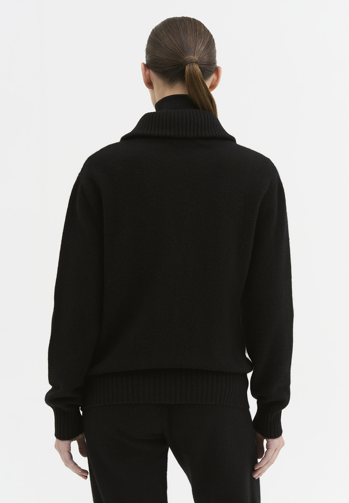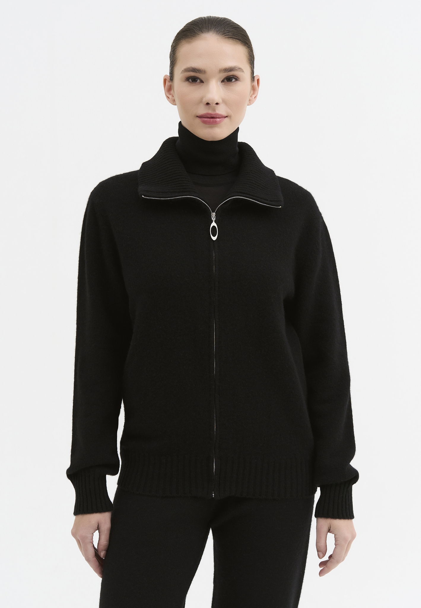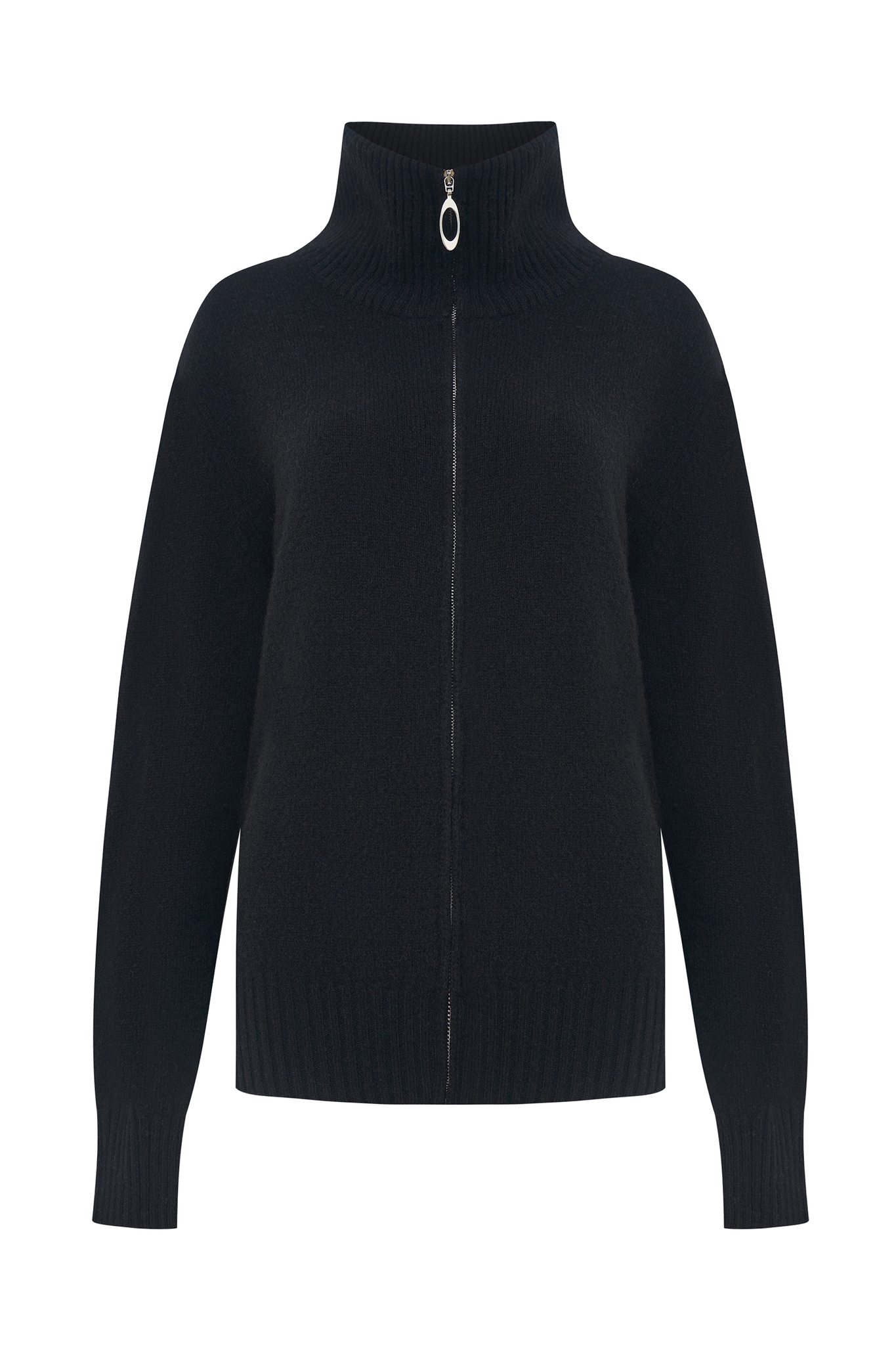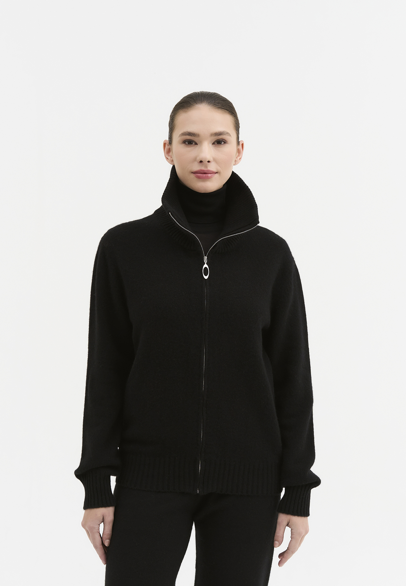Кардиган из нежнейшей кашемировой пряжи с высоким воротом-стойкой.