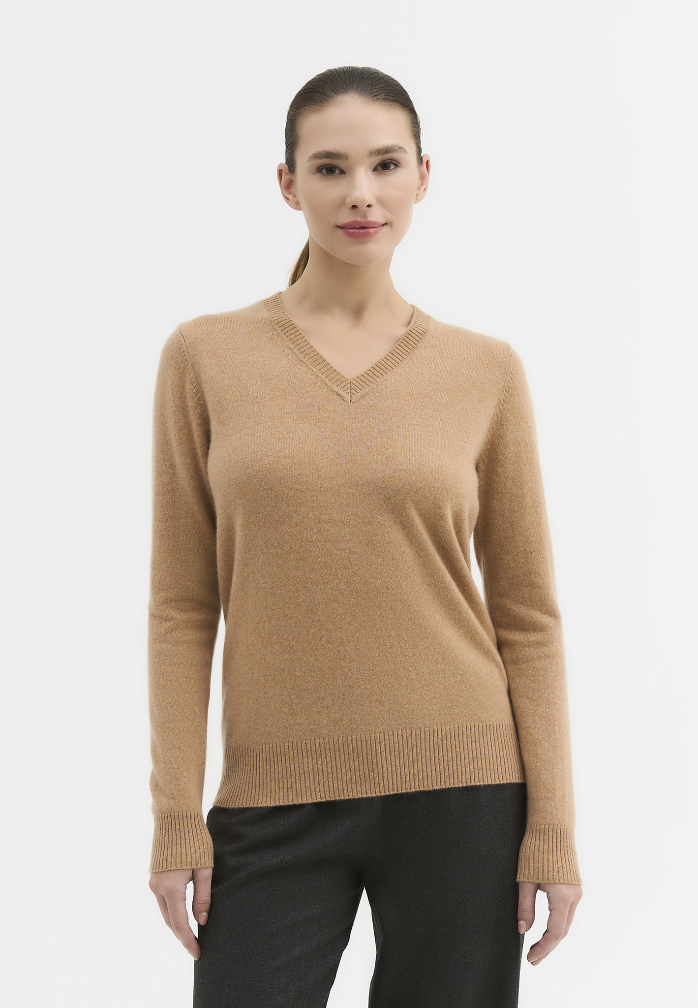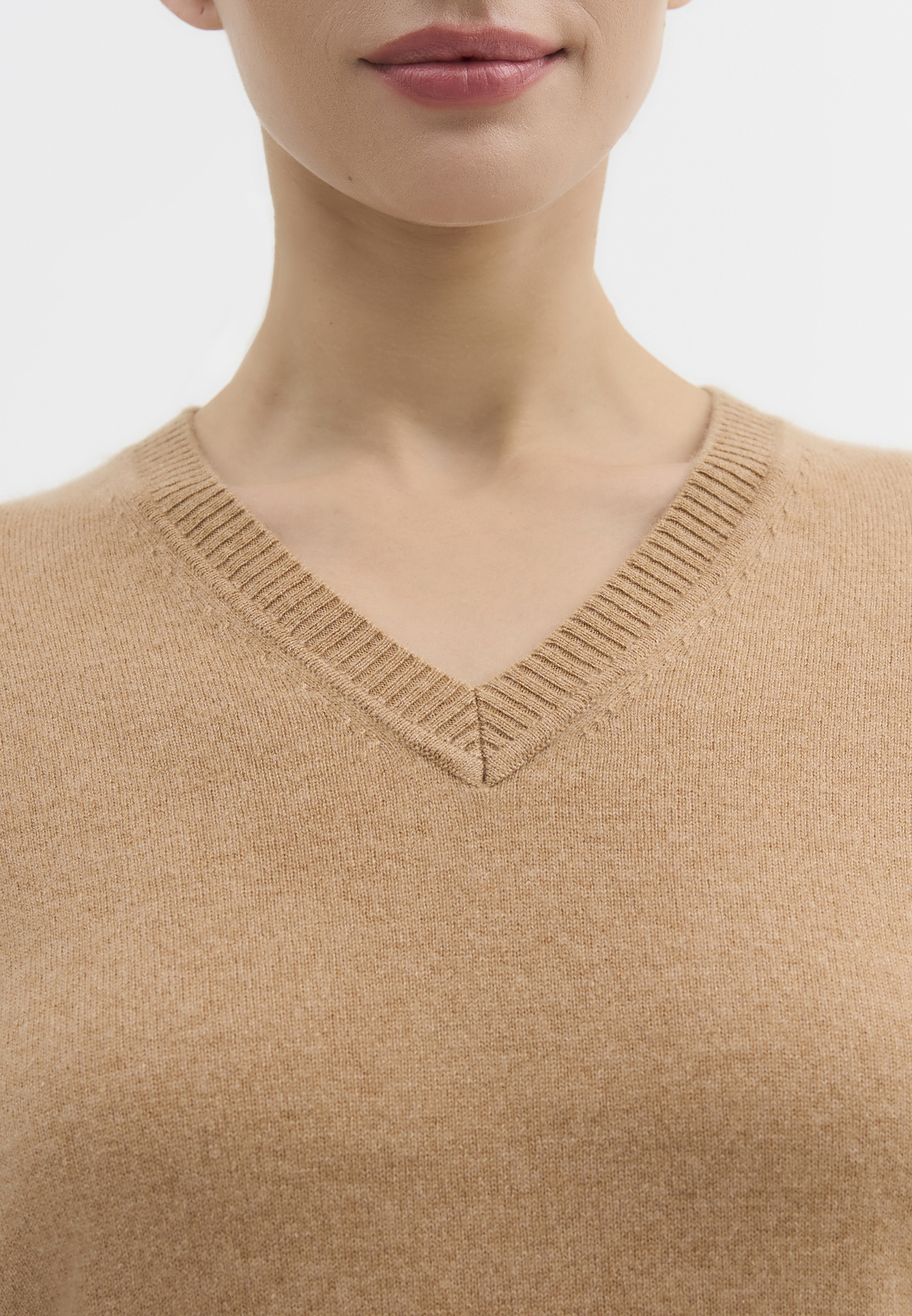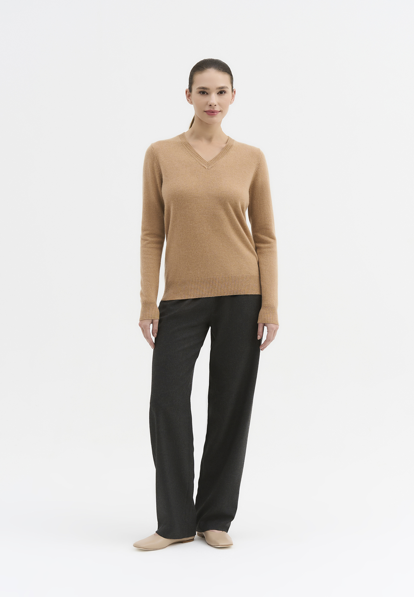 Кашемировый пуловер с V-образным вырезом лаконичного дизайна. Для производства изделия использовали нежный кашемир, который почти не ощущается на теле и поддерживает оптимальную температуру, не давая замерзнуть и не перегревая.