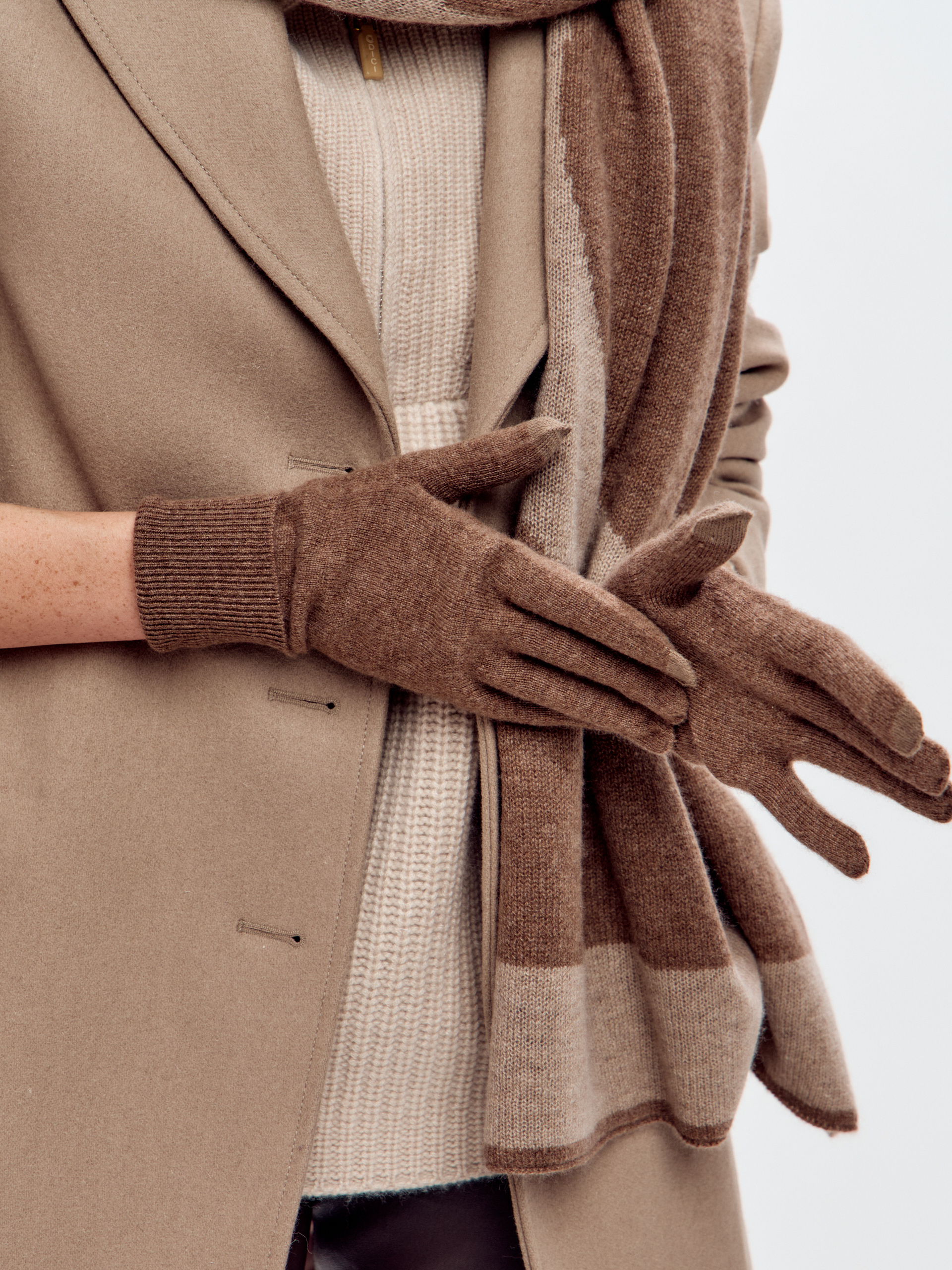 Перчатки из 100% кашемира. Безупречный материал почти не ощущается на коже и особенно хорошо сохраняет тепло.