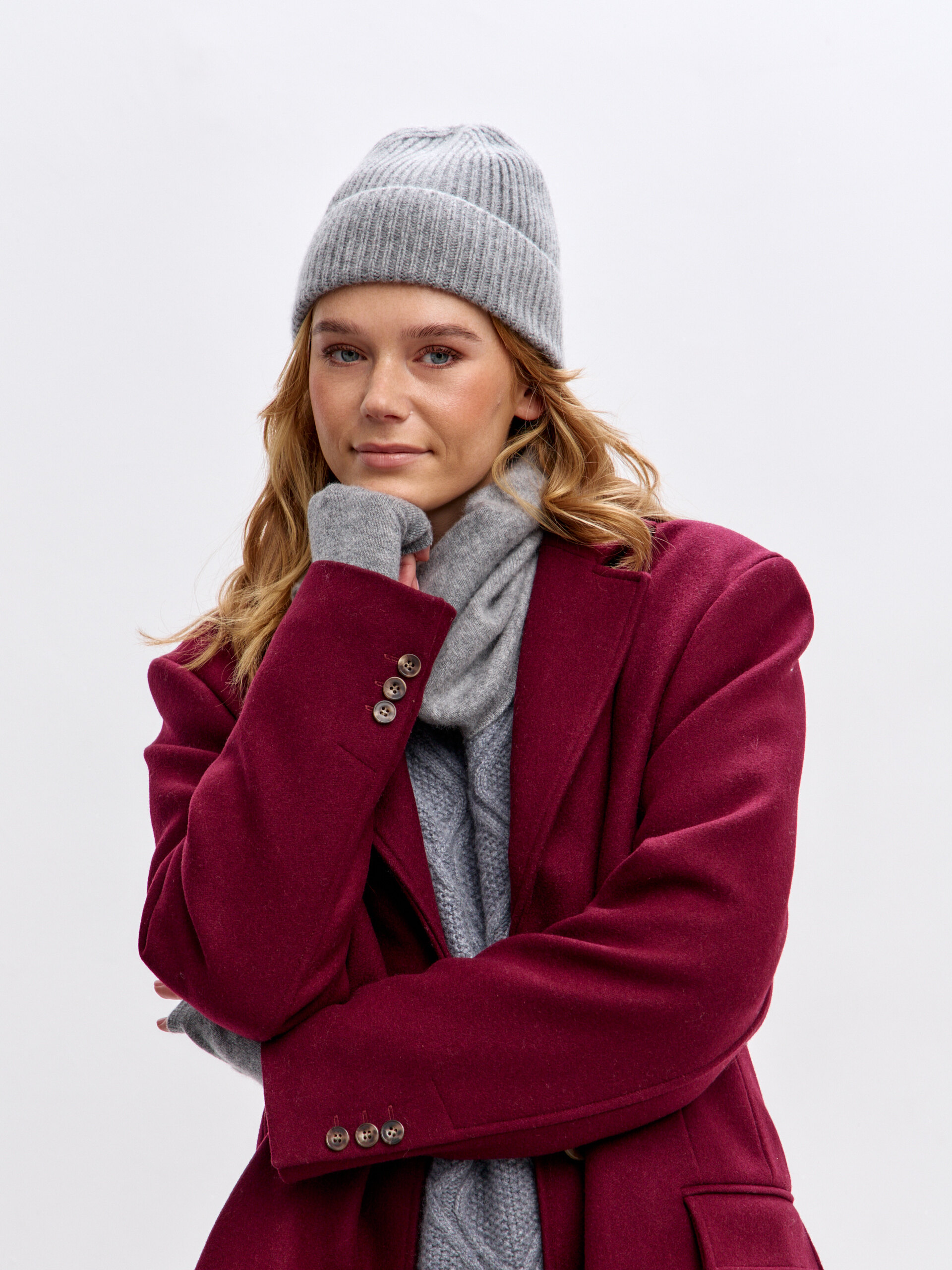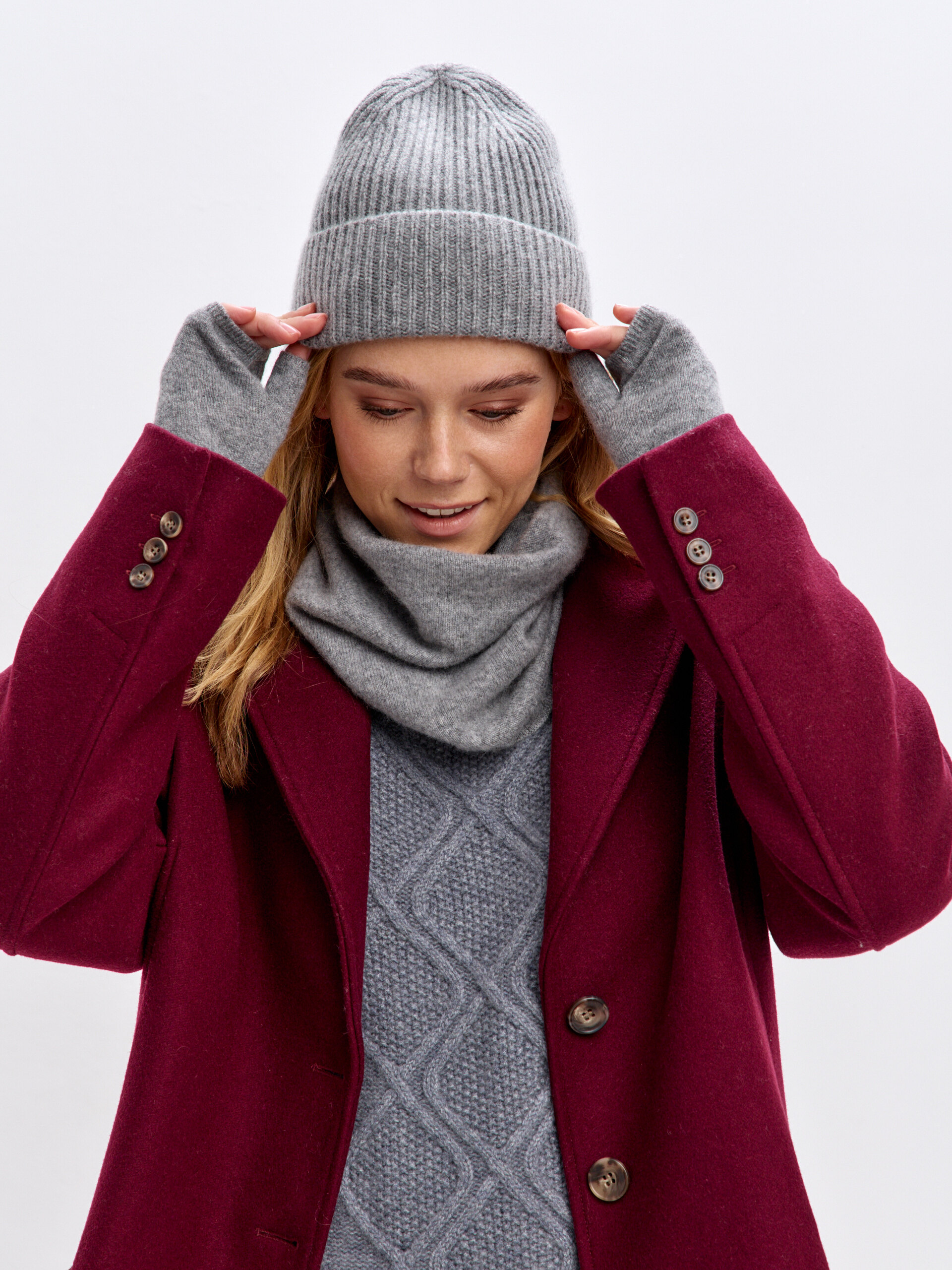 Шапка из 100% кашемира объемной вязки — идеальный и стильный аксессуар для прохладной погоды, который подойдет к любому образу. Высоту отворота можно регулировать.