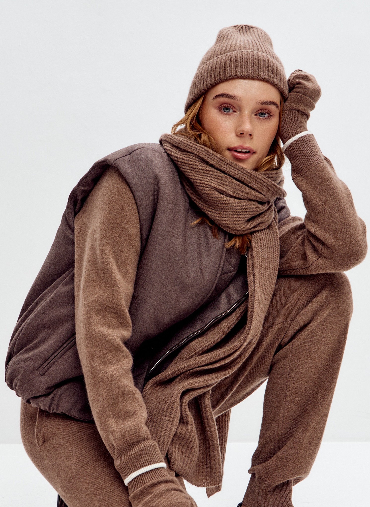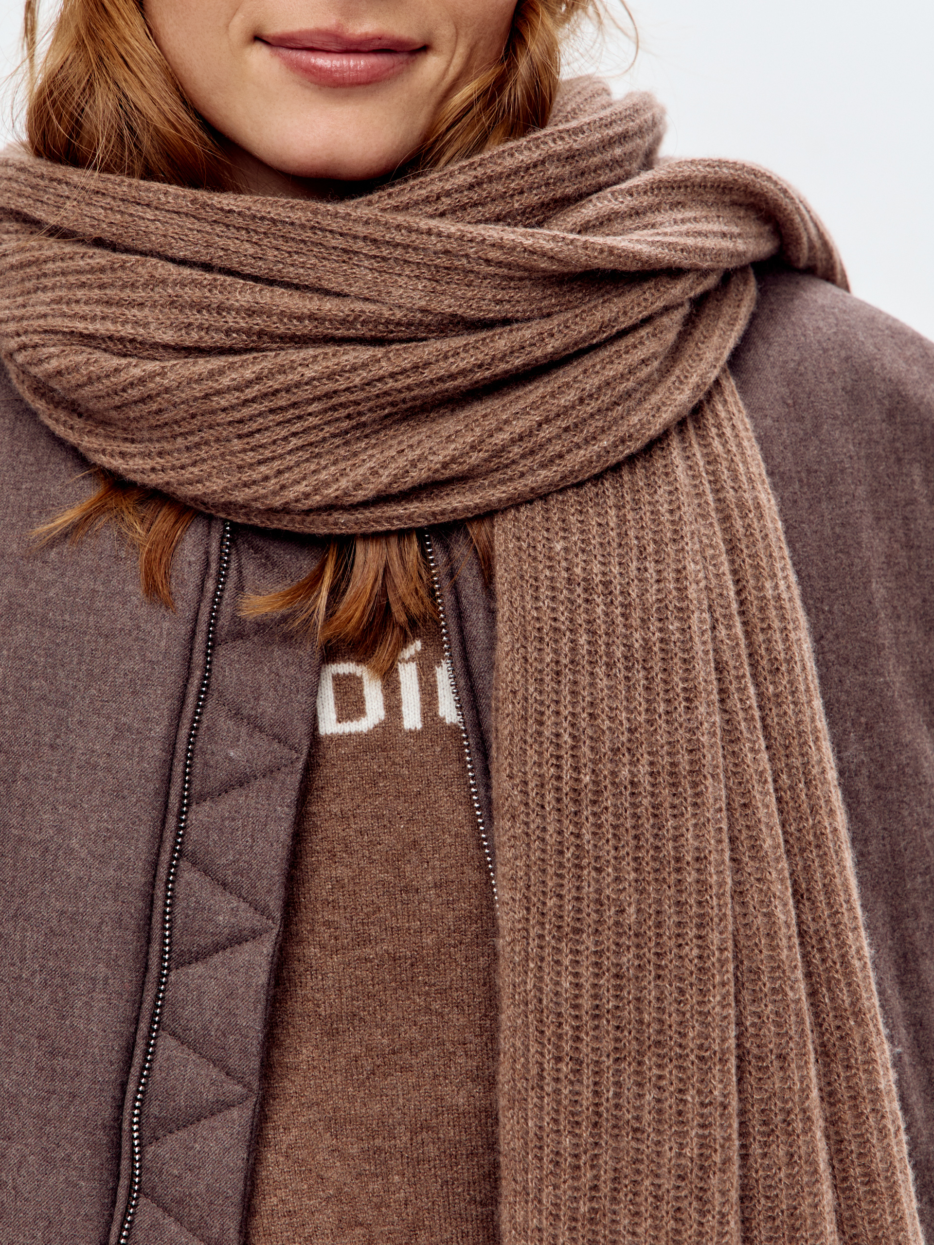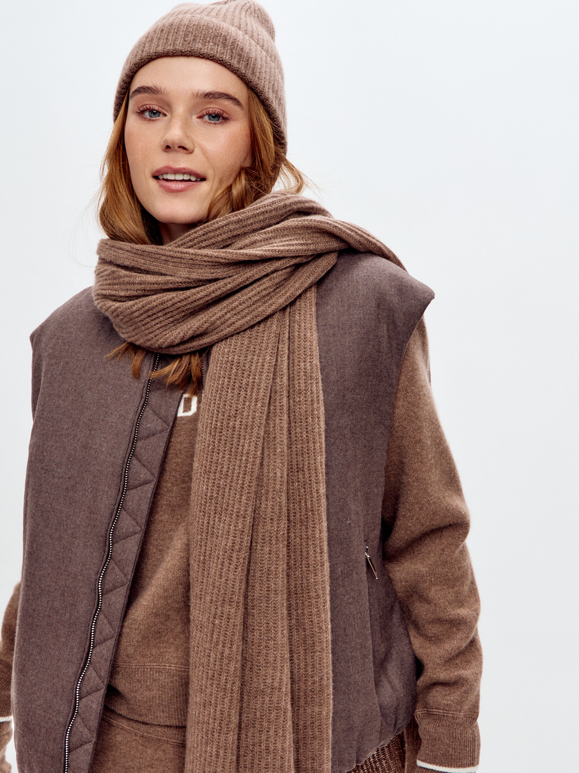 Воздушный шарф из 100% кашемира текстурной вязки станет незаменимым аксессуаром в прохладную погоду.