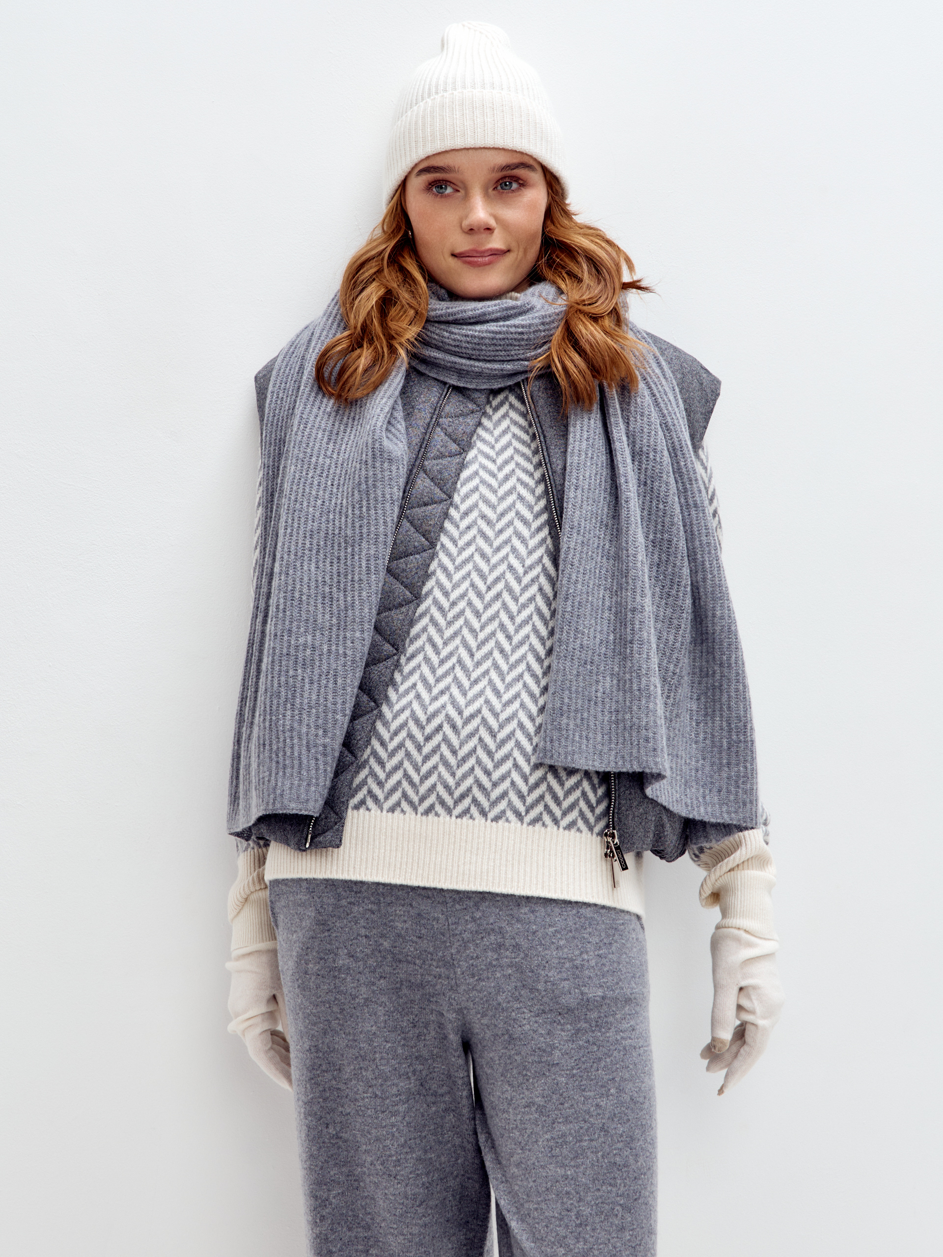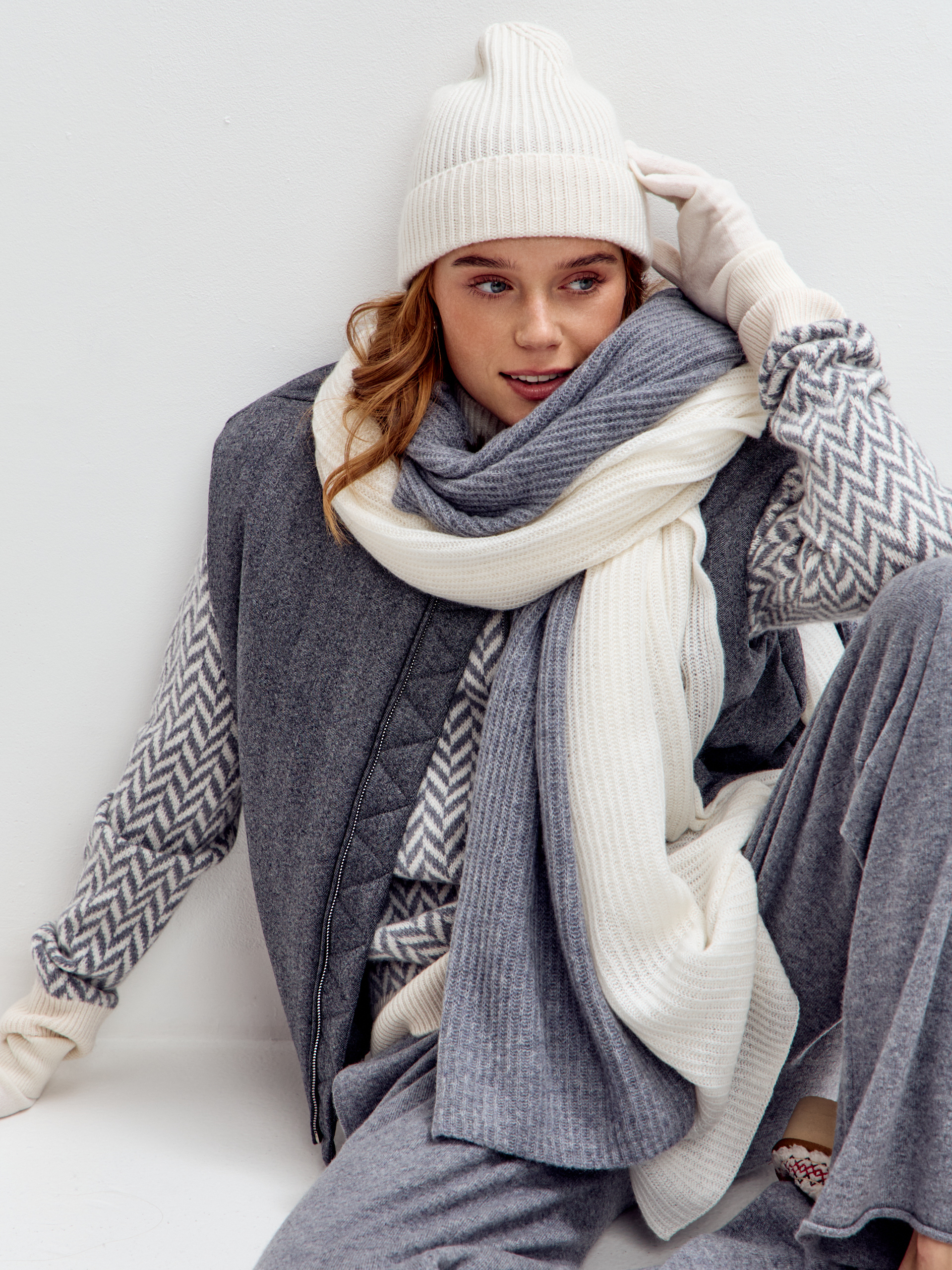 Воздушный шарф из 100% кашемира текстурной вязки станет незаменимым аксессуаром в прохладную погоду.
