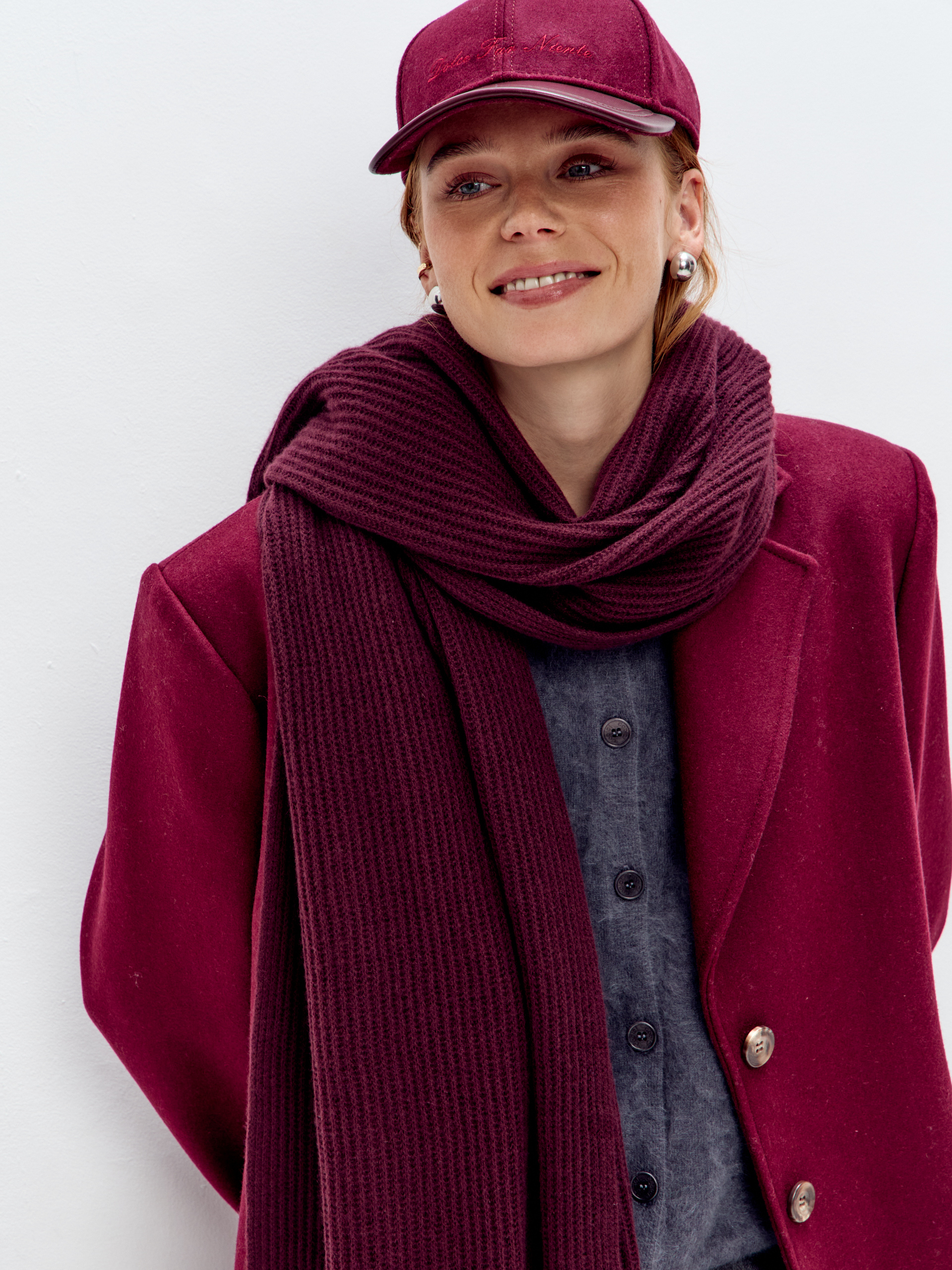 Воздушный шарф из 100% кашемира текстурной вязки станет незаменимым аксессуаром в прохладную погоду.