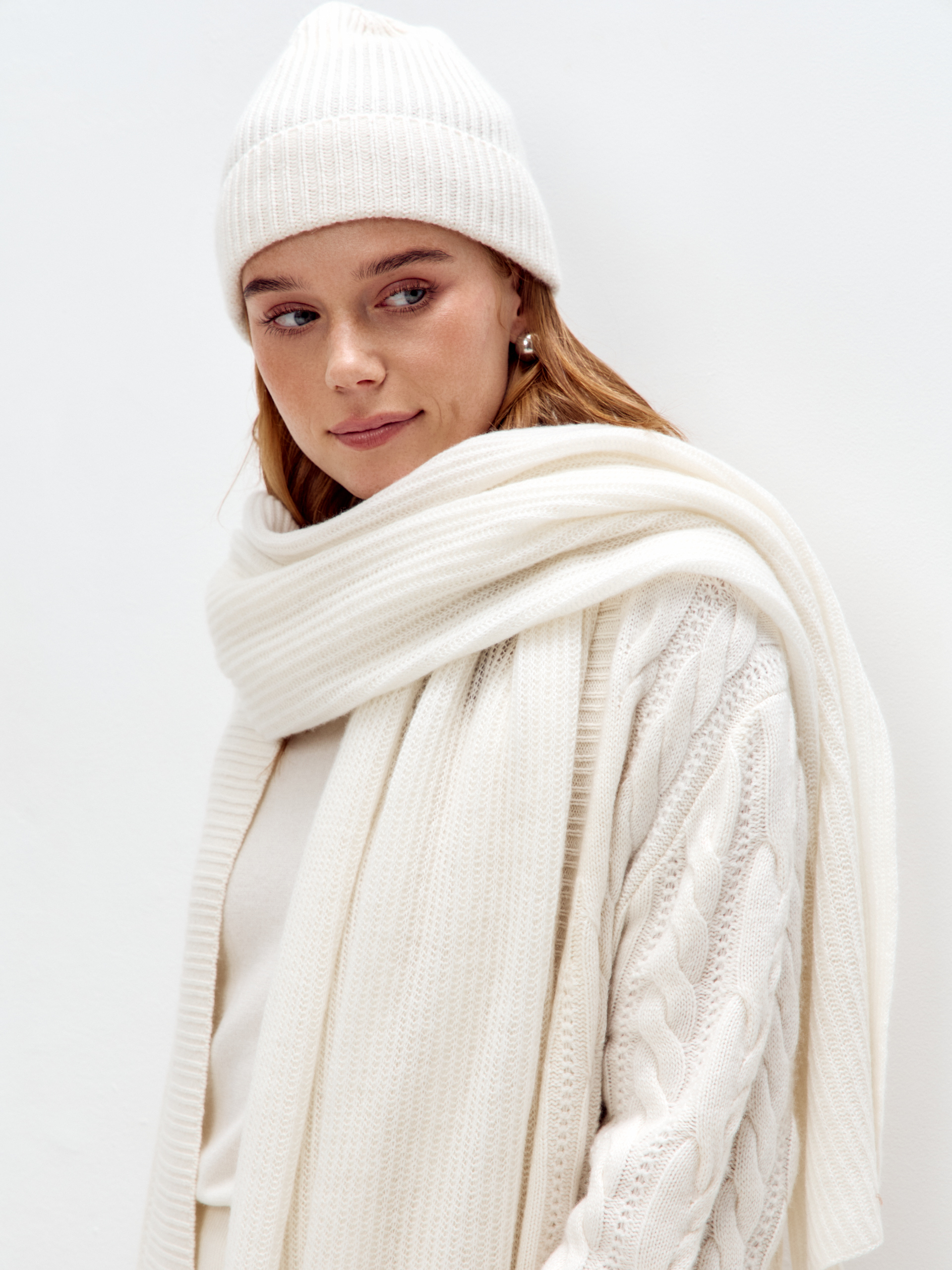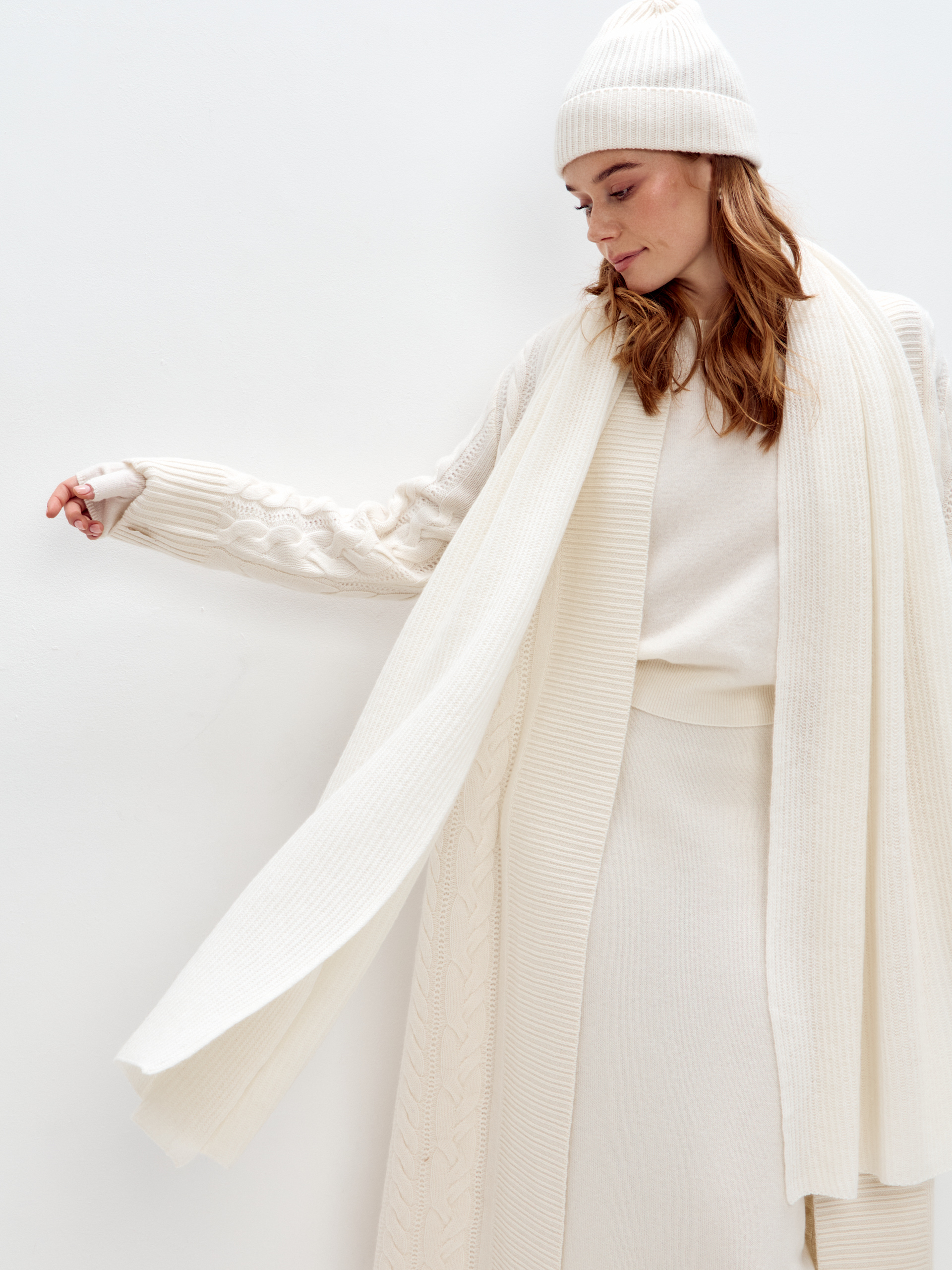 Воздушный шарф из 100% кашемира текстурной вязки станет незаменимым аксессуаром в прохладную погоду.